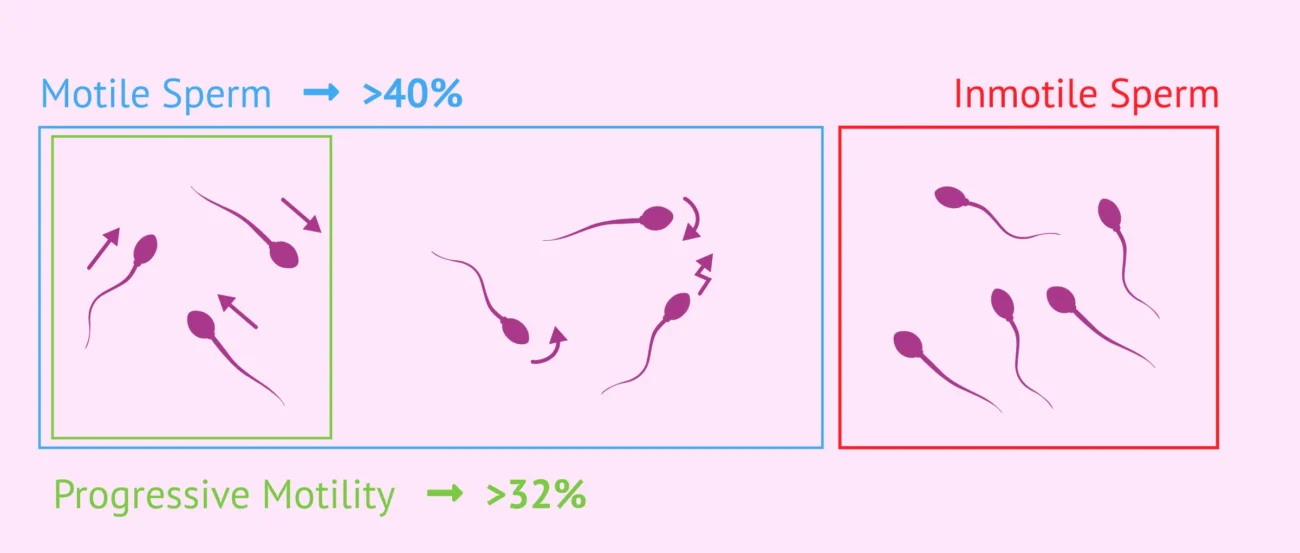 • تحرک اسپرم‌ها (بیش از ۴۰٪ تحرک کلی و بیش از ۳۲٪ تحرک پیش‌رونده)